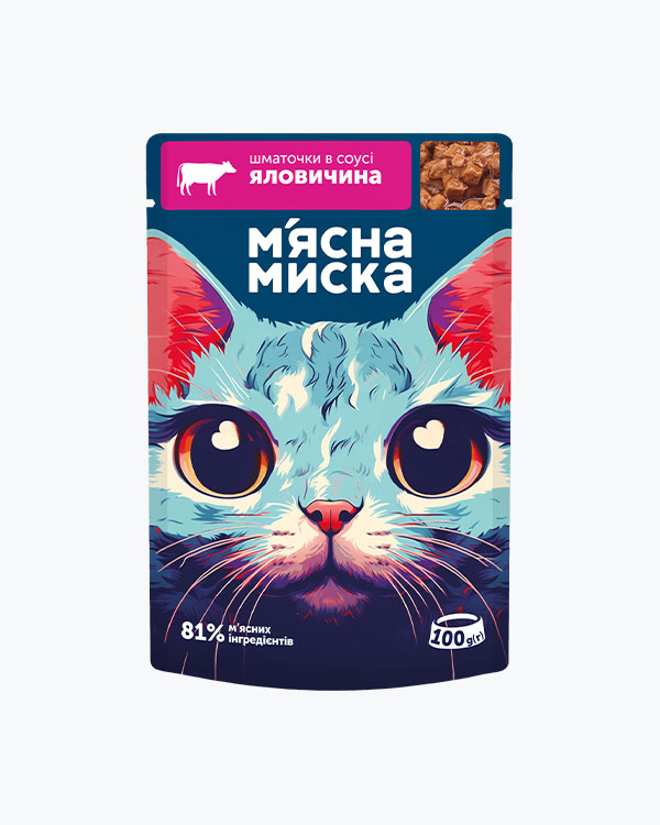 Вологий корм М'ясна Миска для дорослих котів, шматочки в соусі з яловичиною та гарбузом, 415 г