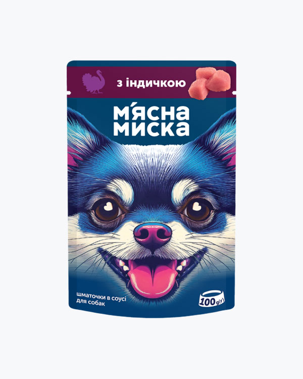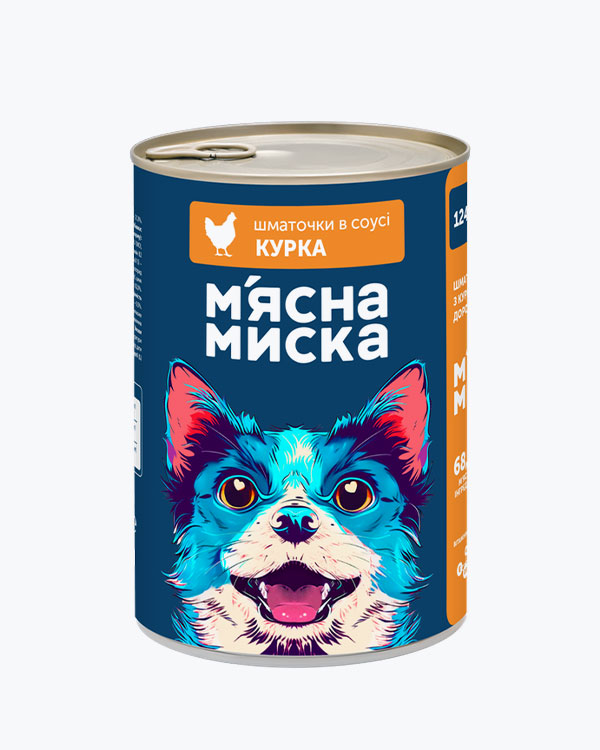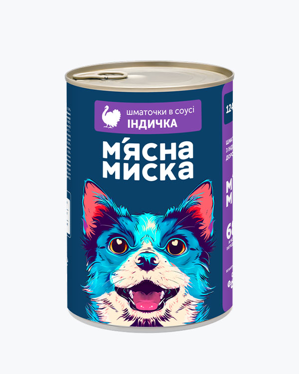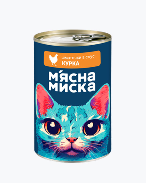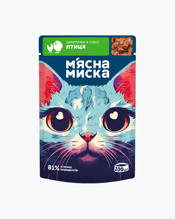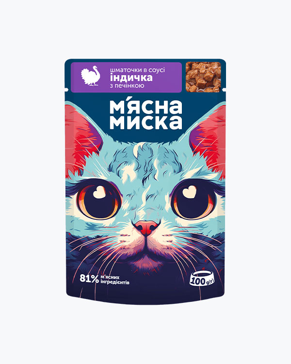 Вологий корм М'ясна Миска для дорослих котів, шматочки в соусі з індичкою та печінкою, 100 г