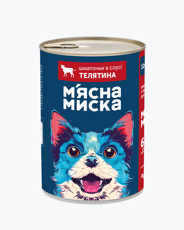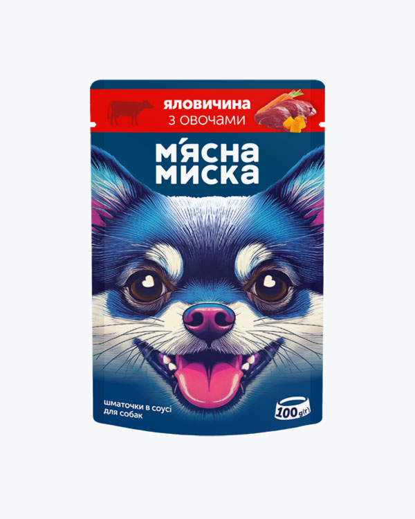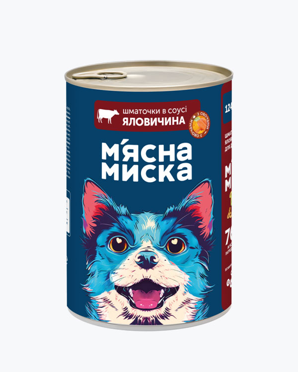 Вологий корм М'ясна Миска для дорослих собак, шматочки в соусі з яловичиною та овочами, 1240 г
