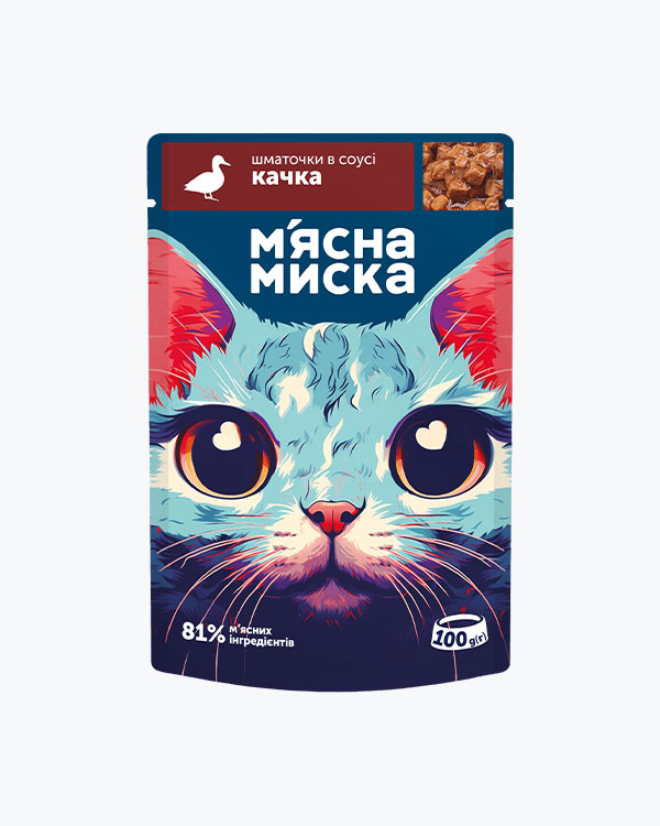 Вологий корм М'ясна Миска для дорослих котів, шматочки в соусі з качкою і яблуками, 415 г