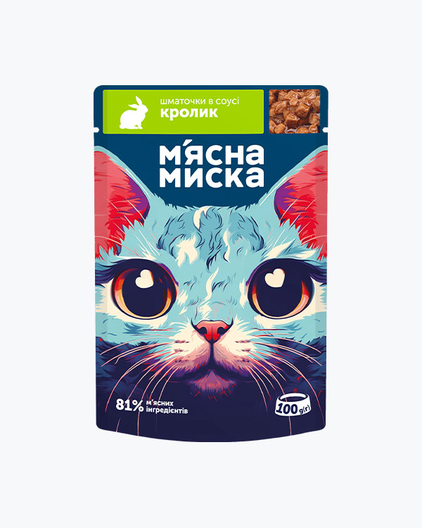Вологий корм М'ясна Миска для дорослих котів, шматочки в соусі з кроликом і овочами, 415 г