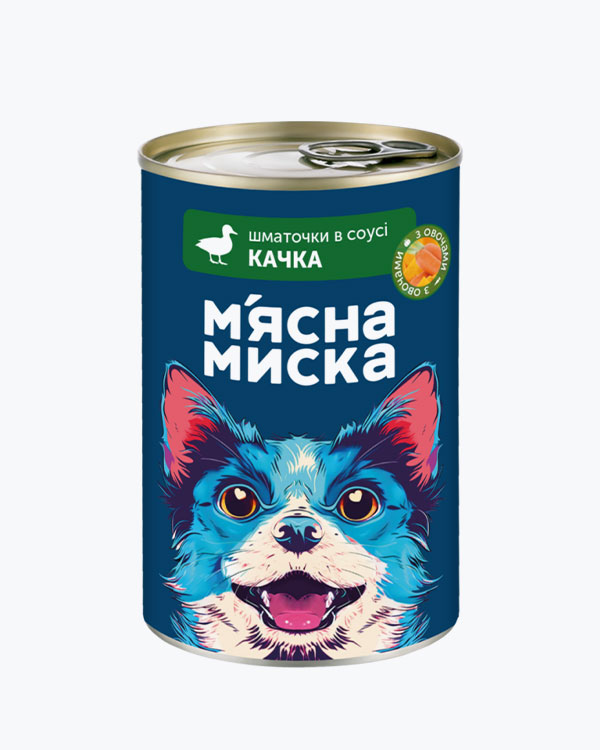Вологий корм М'ясна Миска для дорослих собак, шматочки в соусі з качкою та овочами, 415 г