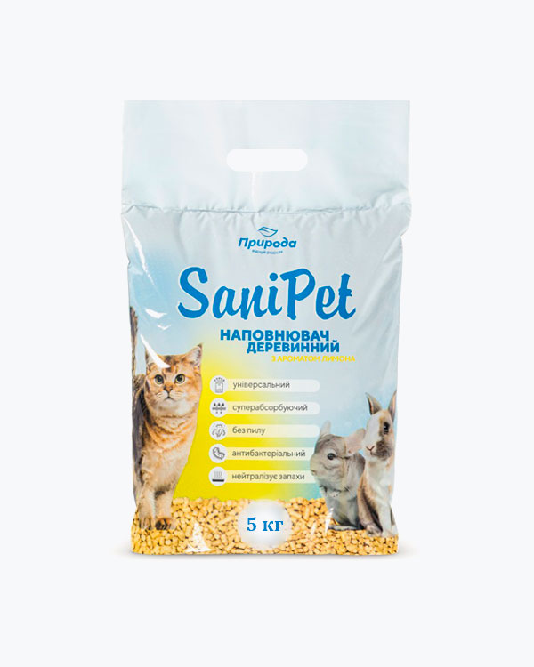 Деревний наповнювач для кішачого туалету Природа SaniPet Універсальний Лимон 5кг