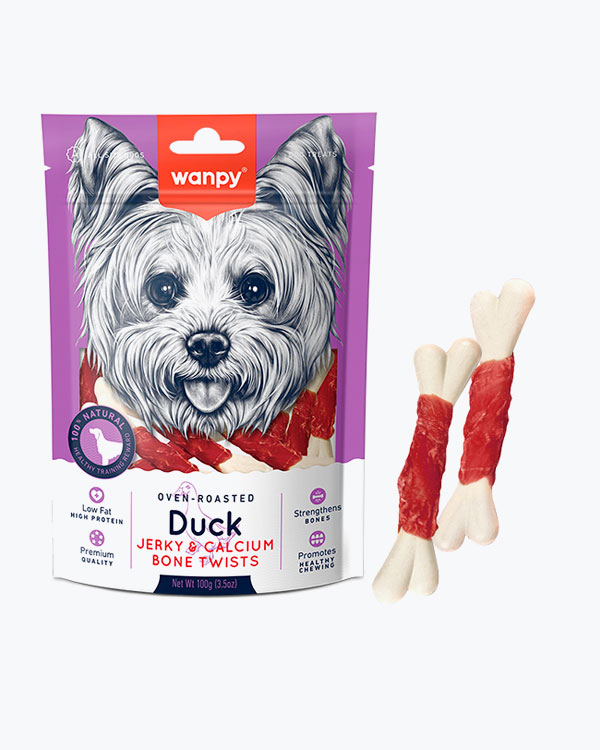 Ласощі WANPY Duck Jerky & Calcium Bone Twists для собак, кальцієва кістка з качкою, 1.2 кг