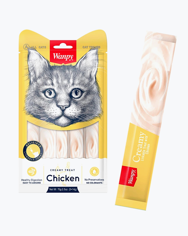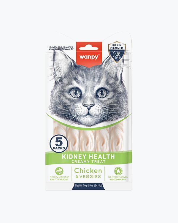 Рідкі ласощі WANPY Functional Creamy Lickable Treat Kidney Health, для котів із нирковою недостатністю, з куркою та овочами, 5 шт по 14 г
