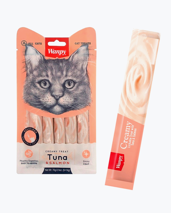 Рідкі ласощі WANPY Creamy Lickable Treats Tuna & Salmon, для котів, тунець з лососем, 5 шт по 14 г