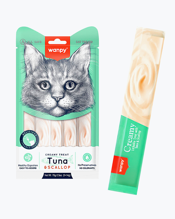 Рідкі ласощі WANPY Creamy Lickable Treats Tuna & Scallop, для котів, тунець з морським гребінцем, 5 шт по 14 г