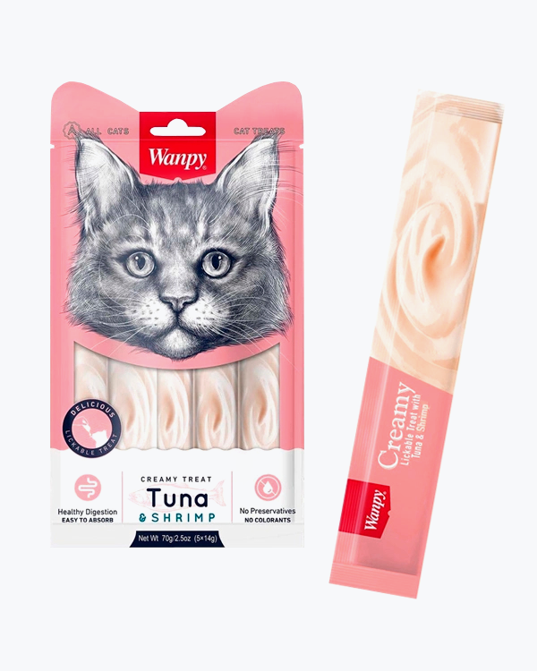 Рідкі ласощі WANPY Lickable Treats Tuna & Shrimp для котів, тунець з креветками, 5 шт по 14 г