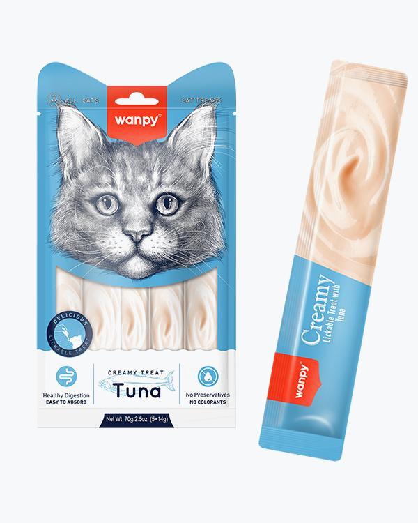 Рідкі ласощі Wanpy Functional Creamy Lickable Treat Tuna & Codfish, для котів, тунець з тріскою, 5 шт по 14 г