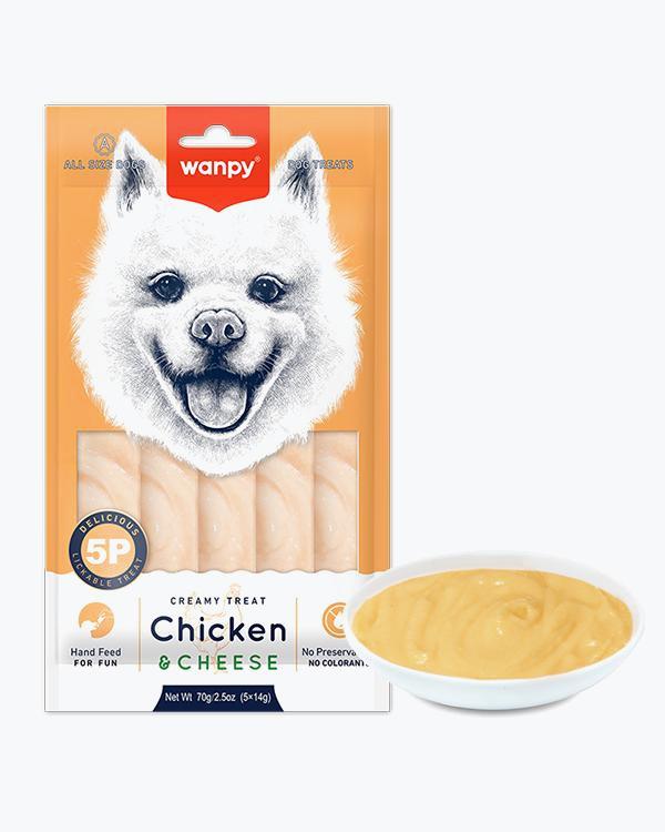 Рідкі ласощі WANPY Creamy Lickable Treat Chicken&Cheese для собак, курка та сир, 5 шт по 14 г