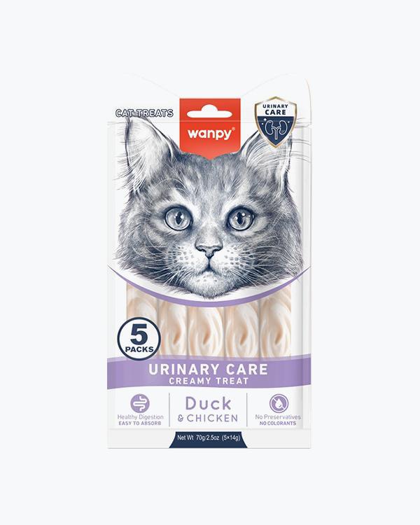 Рідкі ласощі WANPY Functional Creamy Lickable Treat Urinary Care, для котів сечокам’яною хворобою, з качкою та куркою, 5 шт по 14 г