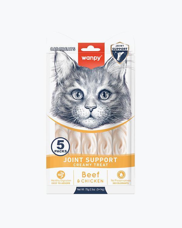 Рідкі ласощі WANPY Functional Creamy Lickable Treat Joint Support, для котів, здоров'я суглобів, з яловичиною та куркою, 5 шт по 14 г