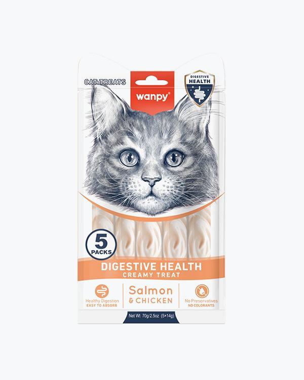 Рідкі ласощі WANPY Functional Creamy Lickable Treat Digestive Health, для котів із чутливим травленням, з лососем та куркою, 5 шт по 14 г