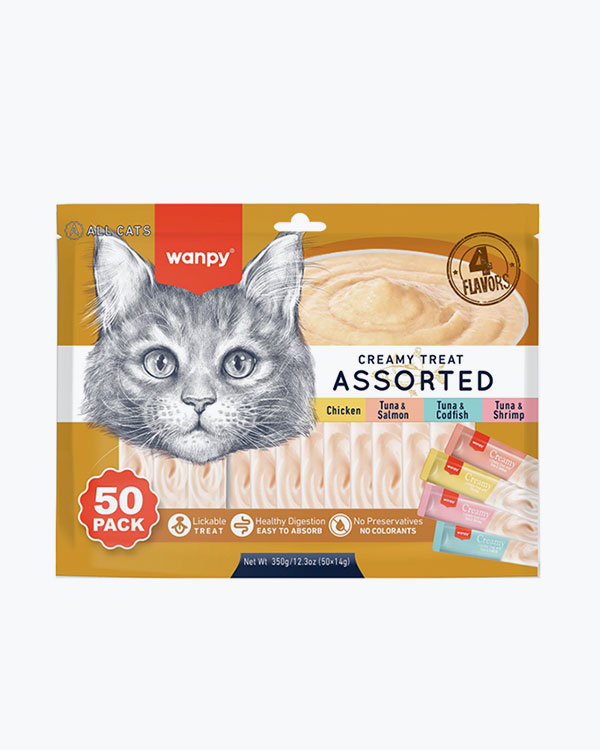 Рідкі ласощі WANPY Functional Creamy Lickable Treat Hairball Control, для котів, виведення шерсті, з тріскою та куркою, 5 шт по 14 г