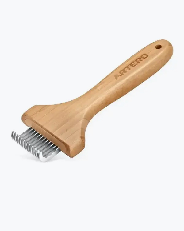 Особлива будова зубців дозволить глибоко проникнути в шерсть, при цьому зберегти шерсть гладкою та шовковистою. При регулярному використанні шерстяний покрив Вашого вихованця буде виглядати здоровим і блискучим, значно зменшуючи линяння. Завдяки дешеддеру, Ви розв'яжете проблему ковтунів та заплутаної шерсті. Виготовлений із нержавіючої сталі. Дешеддер Artero Ultra Coat – інструмент для видалення короткого, жорсткого і подвійного підшерстя порід собак - спаніель, хаски, корги, акіта-іну, сіба-іну, чау-чау. Є міцною бамбуковою конструкцією з ручкою, підготовленою для зручного захоплення.