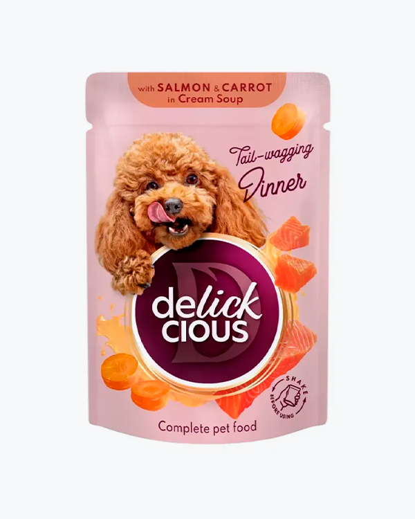 Смужки з відбірного лосося, огорнуті ніжним крем-супом, слугують джерелом легкозасвоюваного білка і дають щоденний заряд енергії.Досконалий рецепт не просто враховує потреби організму тварини, а дозволяє насичуватися з задоволенням. Багатство смаку і баланс поживних речовин — все, аби балувати улюбленця якісною їжею. Ваш пес заслуговує на делікатес. Делизькатес Delickcious. Не просто їжа, а вау-лизь!